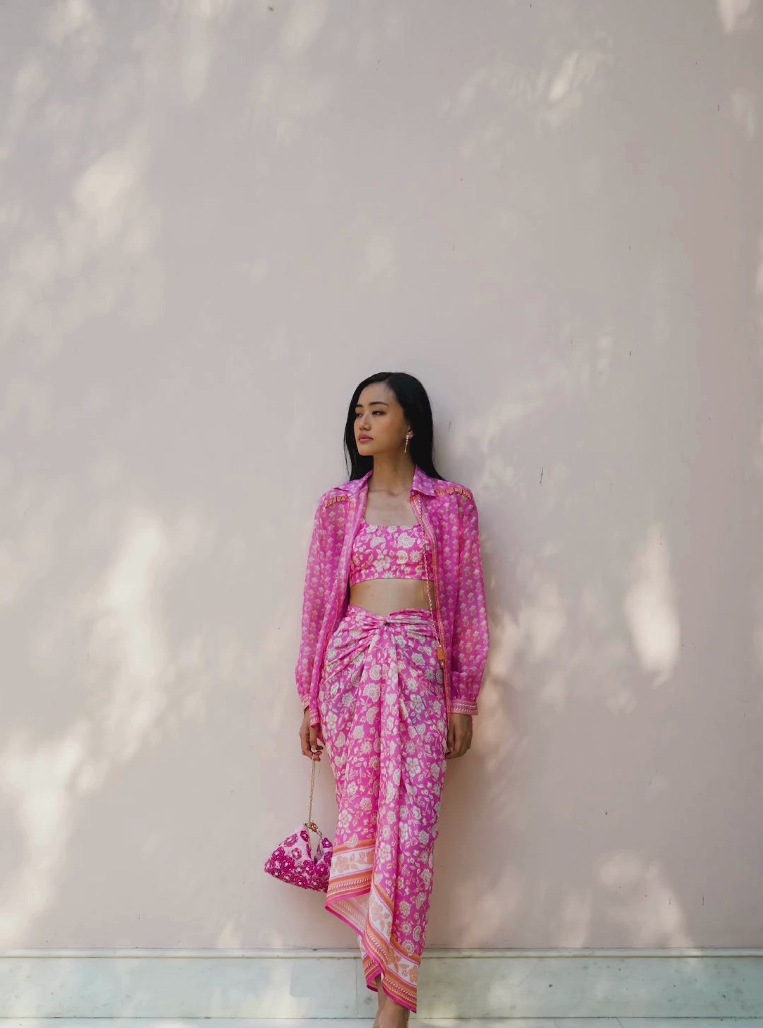 Hasi Cupro Satin Printed Pink Co-ord Set