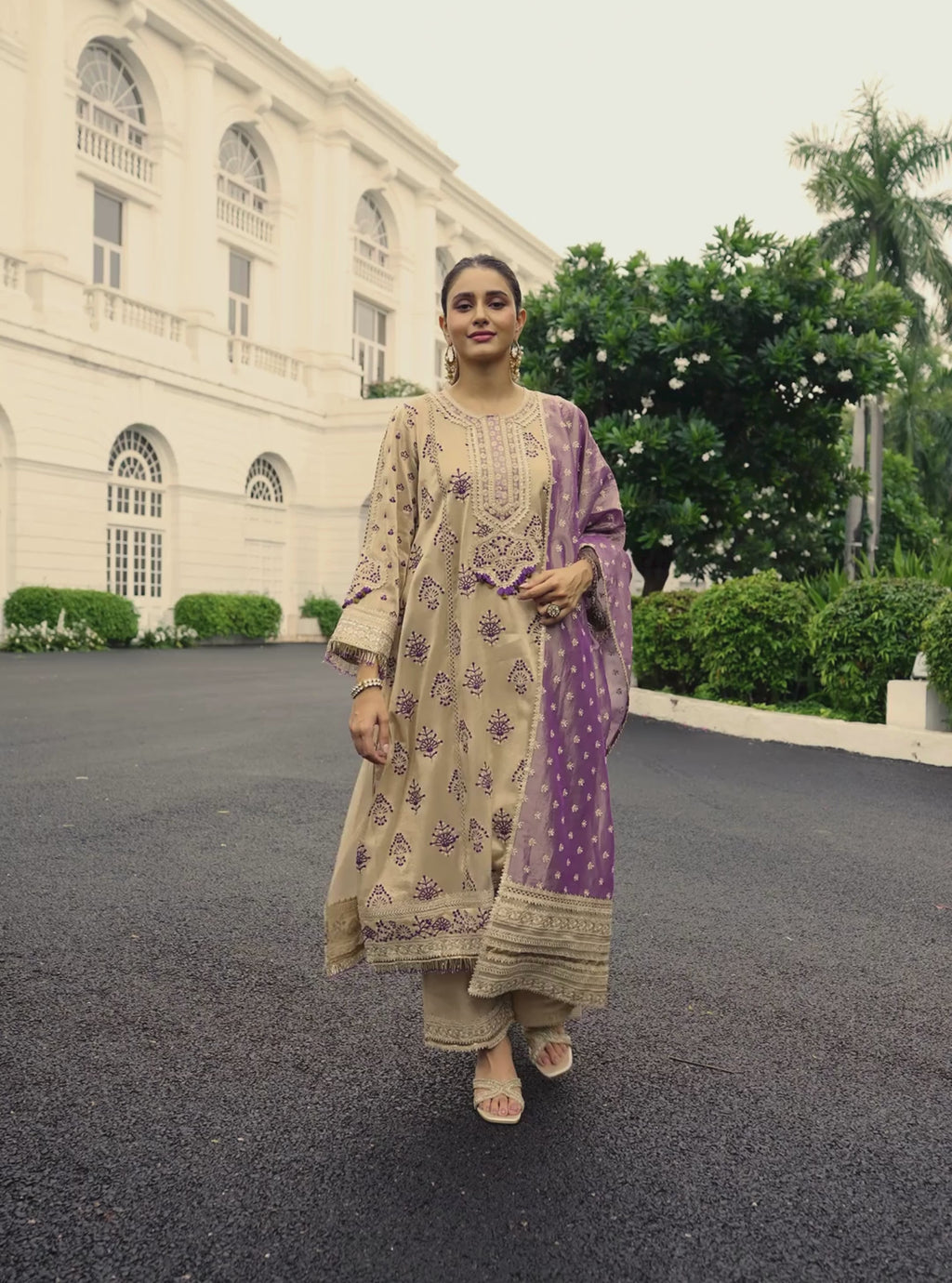 Neesa Organza Beige Anarkali Kurta Set