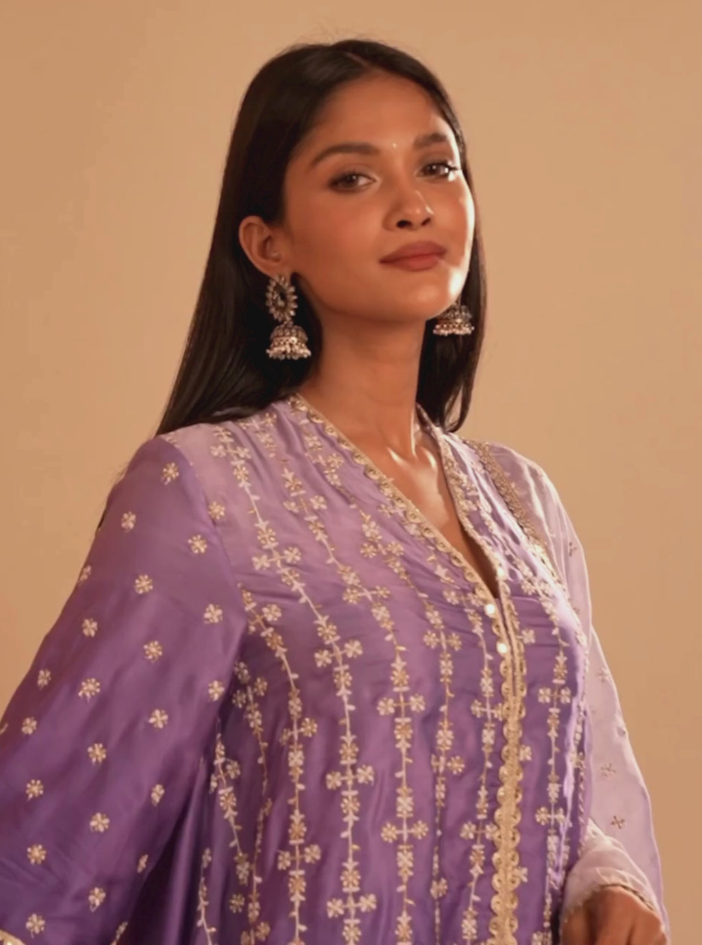 Arvini Cupro Satin Pink Anarkali Kurta Set