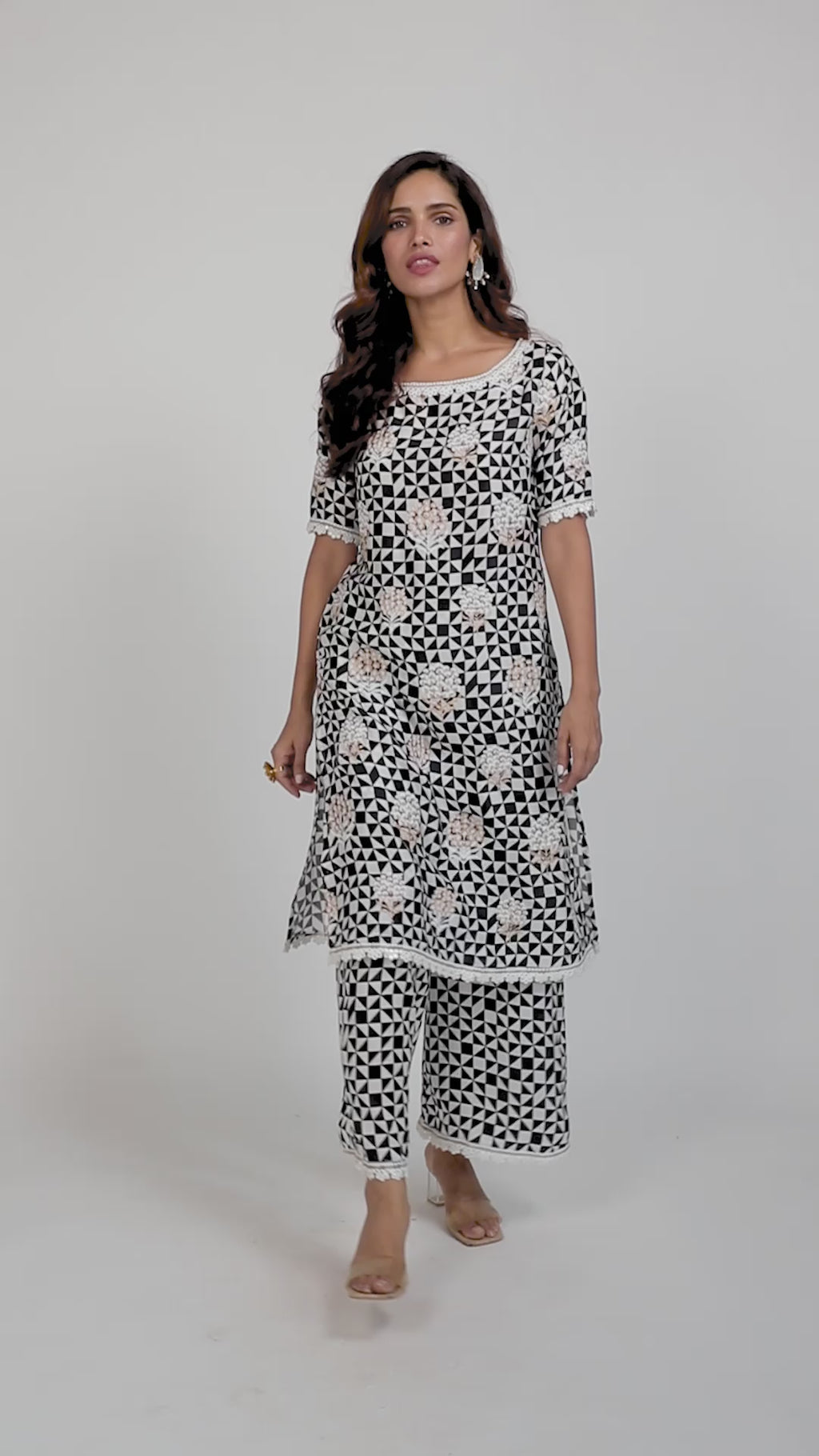 Avisa Cupro Silk Black Kurta with Skirt Set