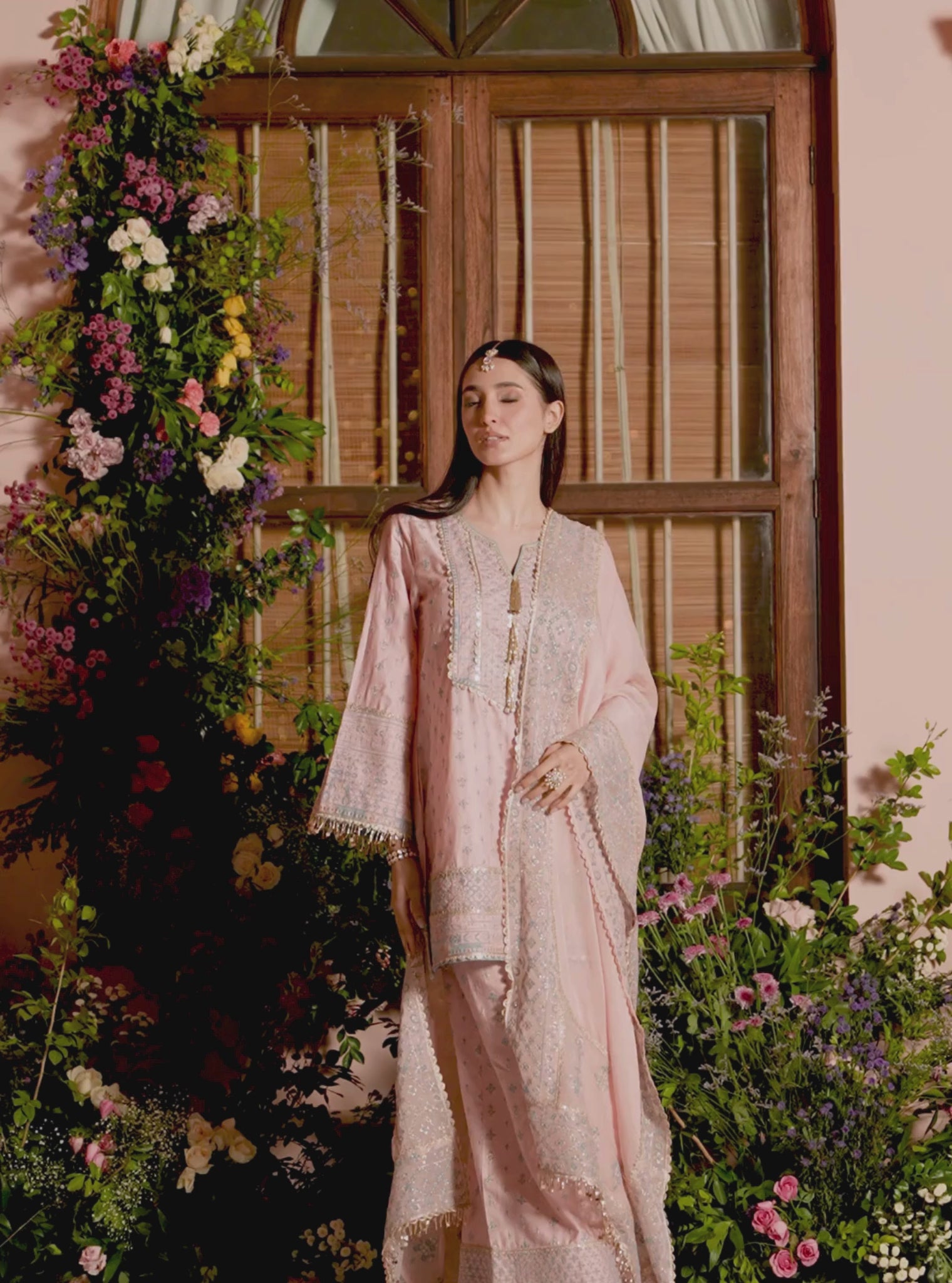 Jhumri Cupro Satin Rani Pink Kurta Set