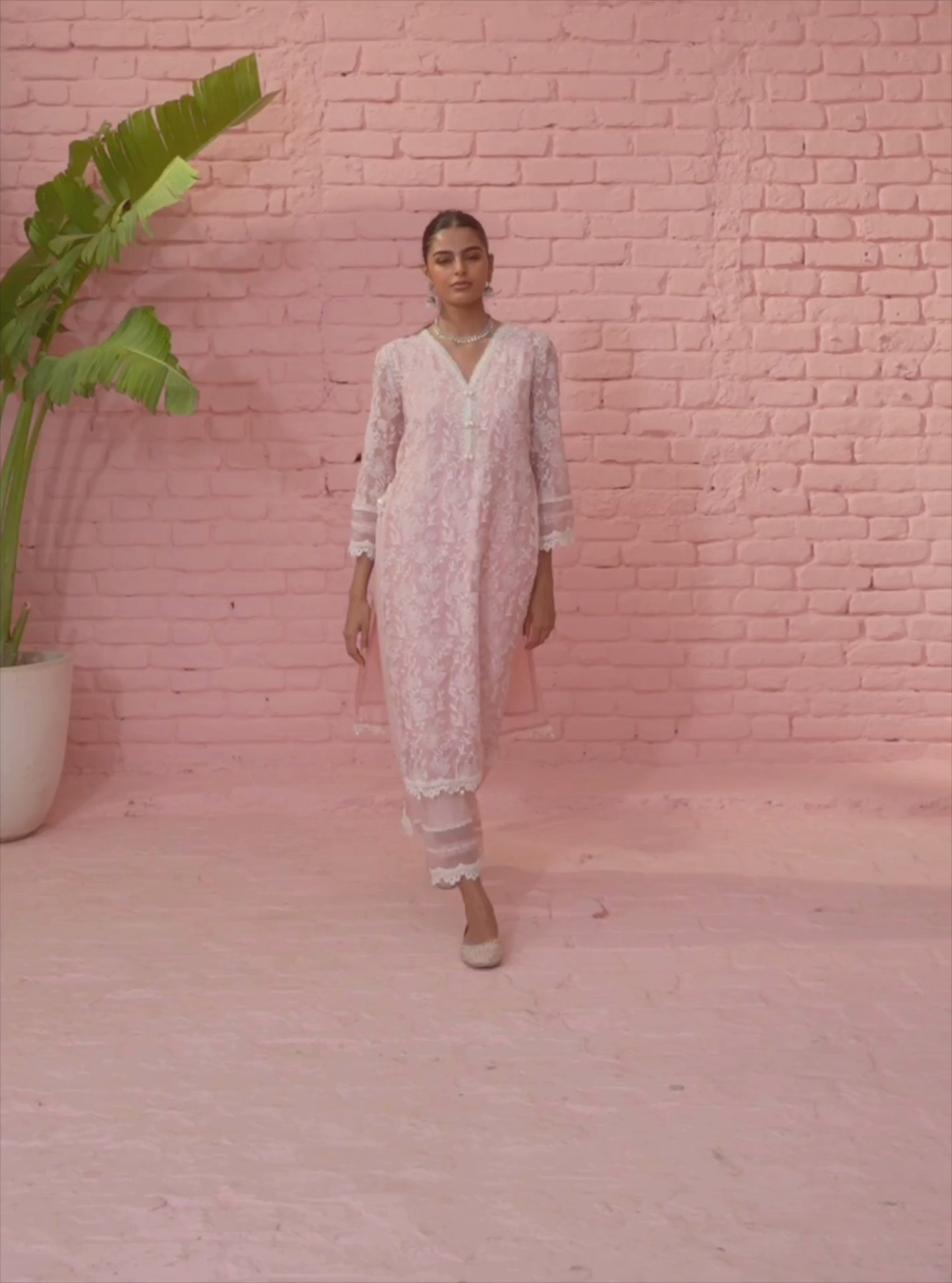 Cahya Organza Pink Kurta Set