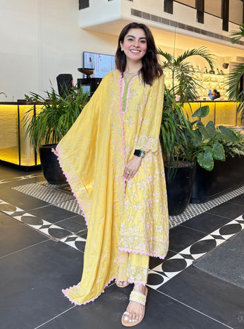 The Coordinating Dupatta, Scattered With Dainty Floral Motifs And Framed By A Detailed Border, Completes The Look With A Refined Charm.