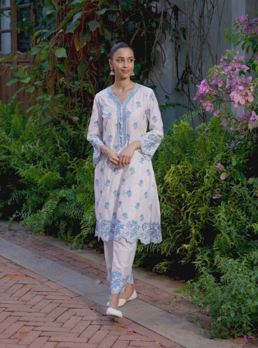 Light and timeless, the Avo kurta set is crafted in soft Supima cotton for breathable comfort. The straight kurta features delicate printed motifs and subtle detailing that lend the silhouette a refined charm. It is paired with easy cotton pants that offer structure while remaining comfortable. The ensemble is finished with a sheer organza dupatta featuring coordinated Avo prints that add softness and movement. A versatile set suited for everyday elegance and relaxed festive dressing.