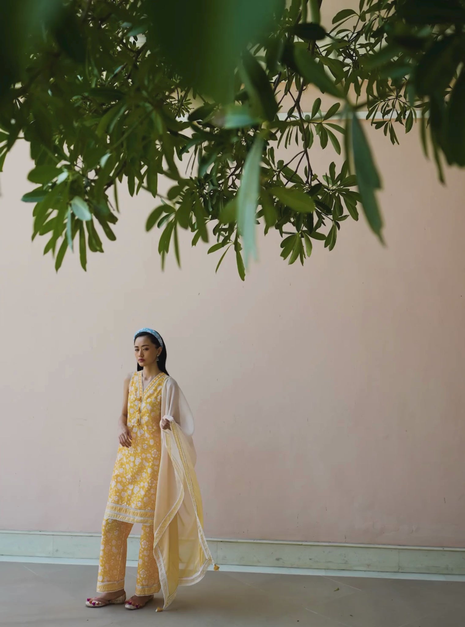The Aubriet Kurta Set In Mustard Is Crafted In Soft Mulmul Cotton With An All-Over Gadh-Inspired Print And A Mid-Length Silhouette. The Kurta Features A Y-Placket Neckline Finished With Shell And Thread Tassels, Along With Delicate Ladder Lace Inserts And Geometric Borders At The Hem. It'S Paired With Coordinated Printed Pants That Mirror The Same Lace Detailing. The Look Is Completed With An Ombré Organza Dupatta In Soft Gradients Of Mustard, Trimmed With Lace And Thread And Shell Tassels.