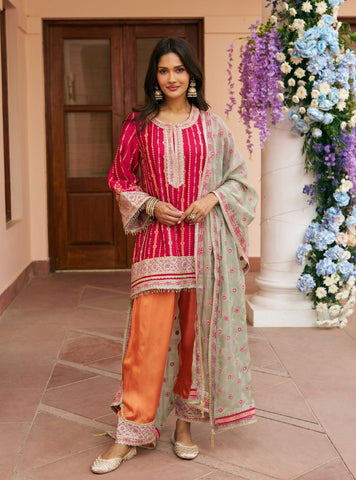 A festive essential crafted in fluid Cupro Satin that drapes beautifully and feels light on the skin. The kurta features delicate embroidery placed thoughtfully to elevate the silhouette without overpowering it. Paired with matching Cupro Satin pants for ease of movement and all-day comfort. Finished with a coordinating dupatta that adds softness and balance to the look.