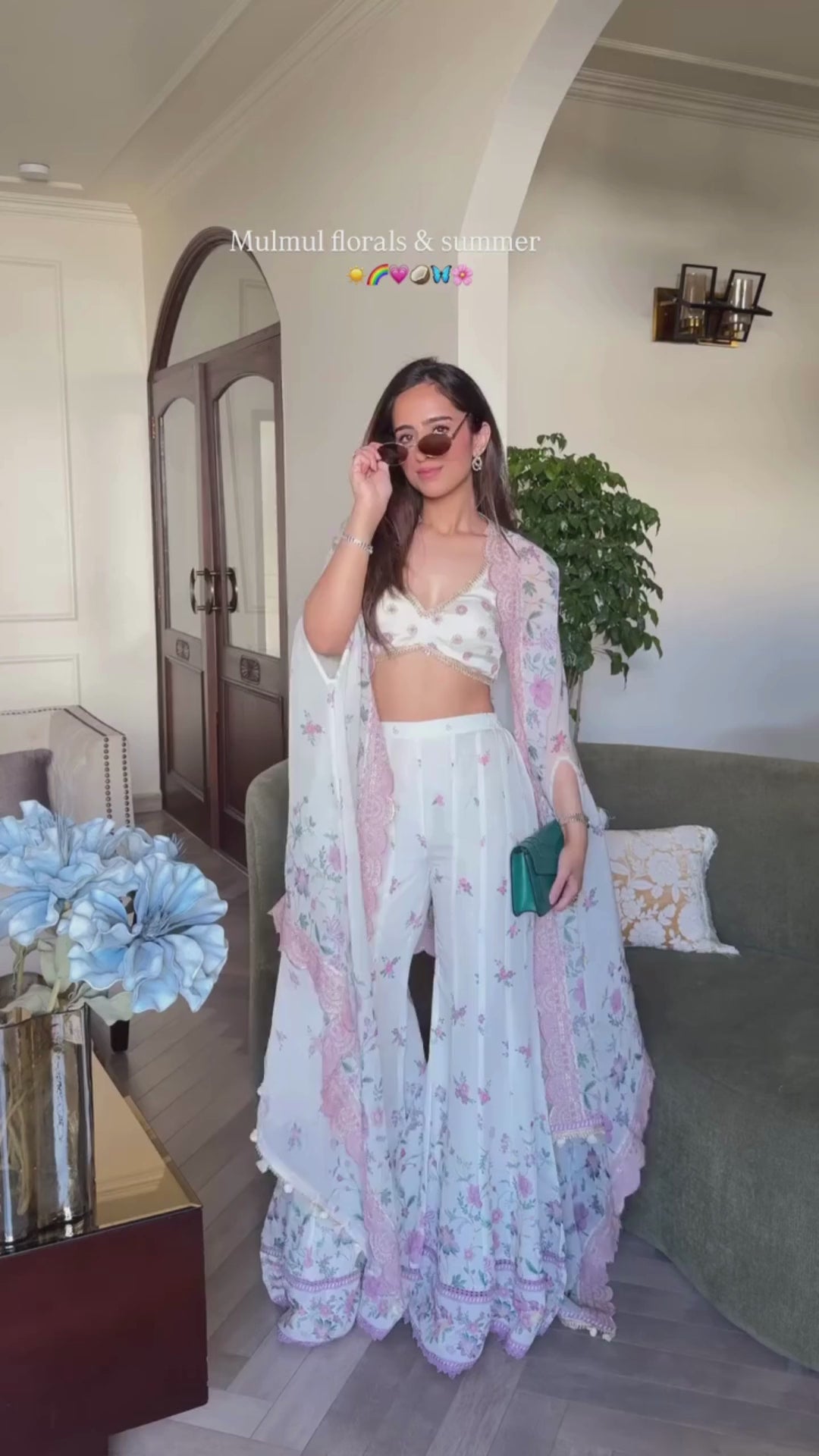Laila Organza Printed Off White Cape Shrug With Sharara