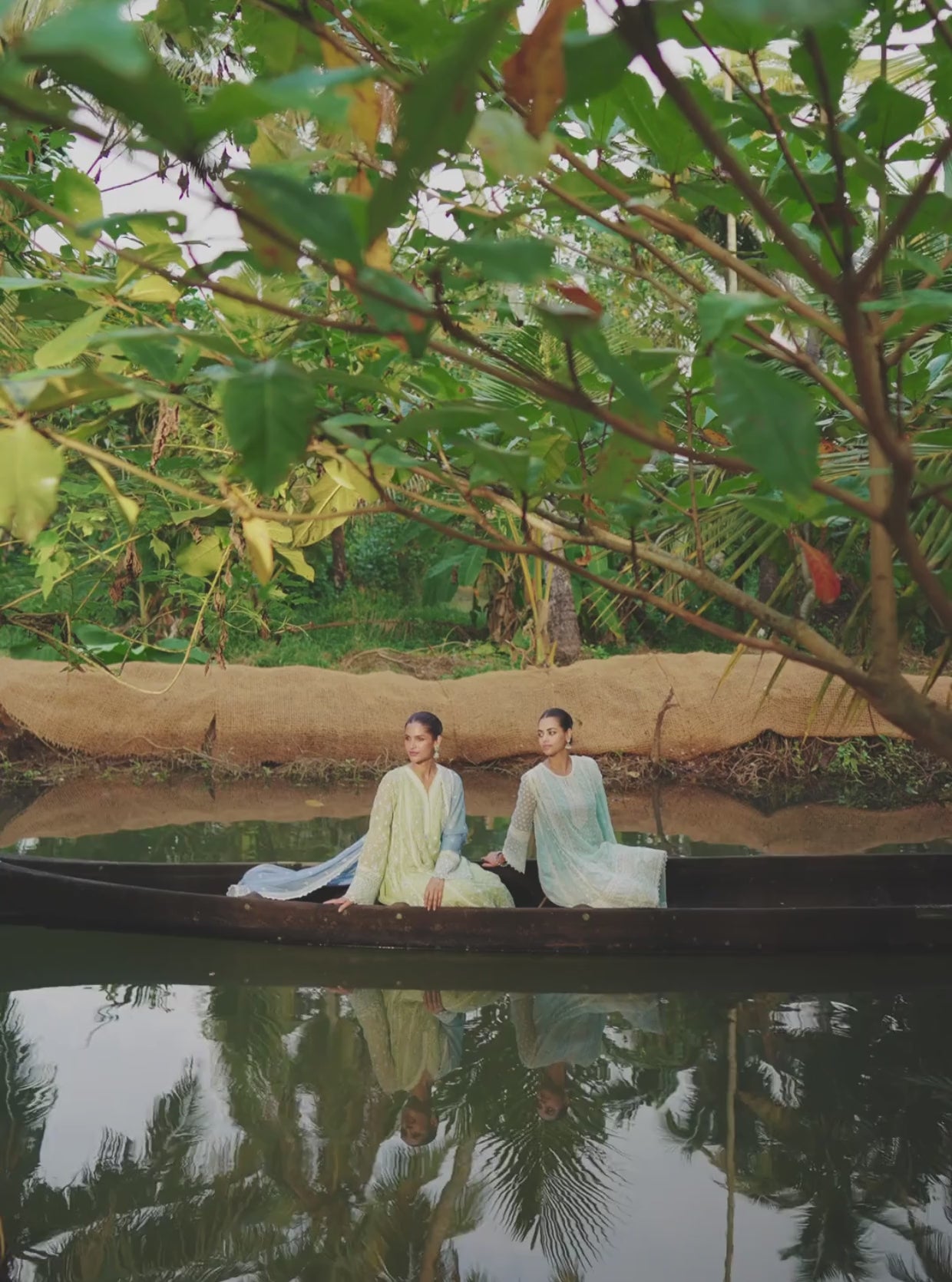 This Pastel Green Anarkali Kurta Set Is A Vision Of Elegance. The Kurta Is Adorned With Intricate White And Blue Thread Embroidery That Cascade Gracefully All Over. The Neckline, Sleeves And Hemline Are Finished With Lace Detailing, Enhancing The Overall Finesse Of The Ensemble. The Kurta Is Paired With Pastel Green Straight-Fit Pants, Bordered With Lace Trims That Mirror The Kurta'S Details.