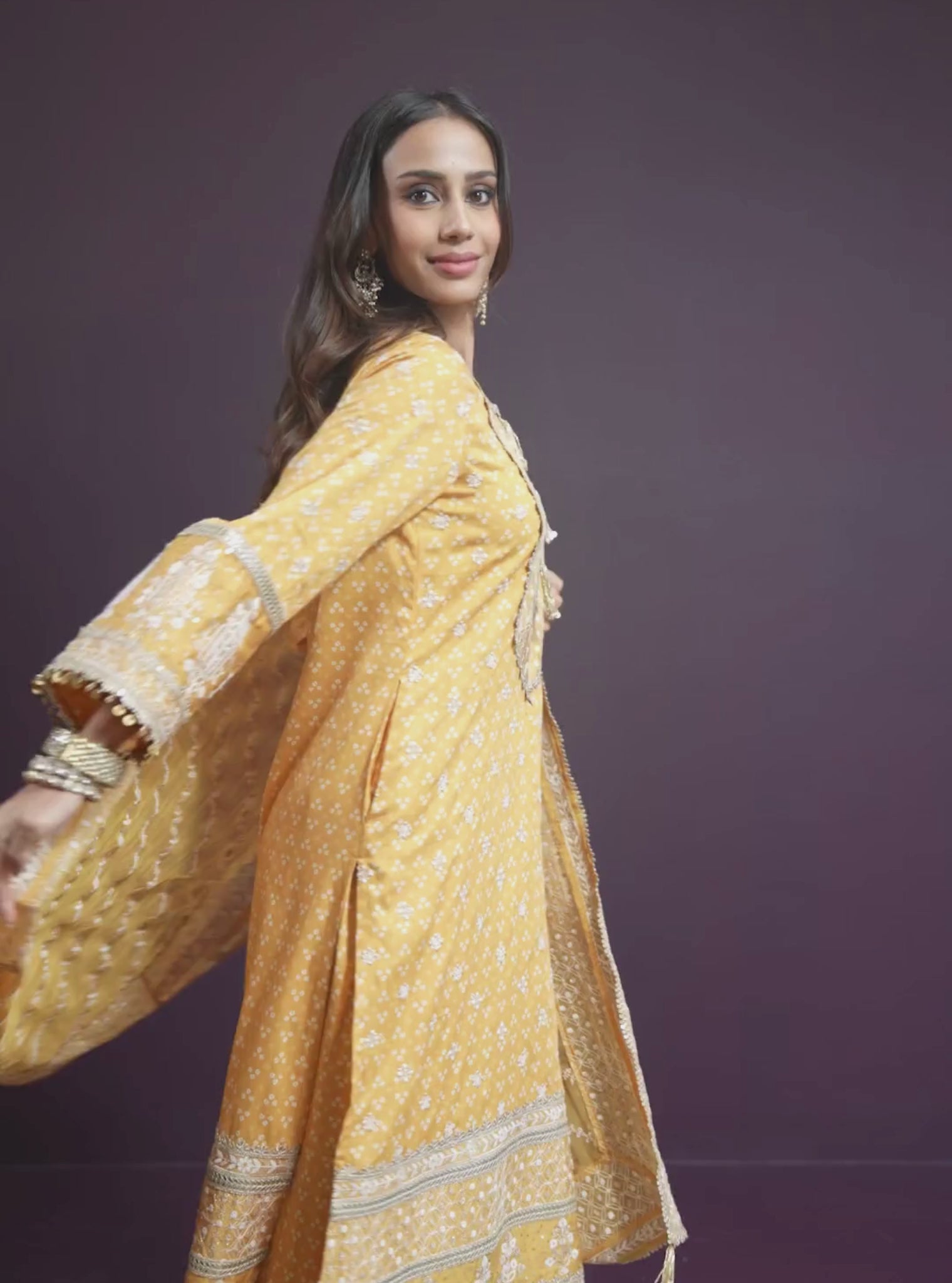 Lari Pima Satin Printed Mustard Kurta Set