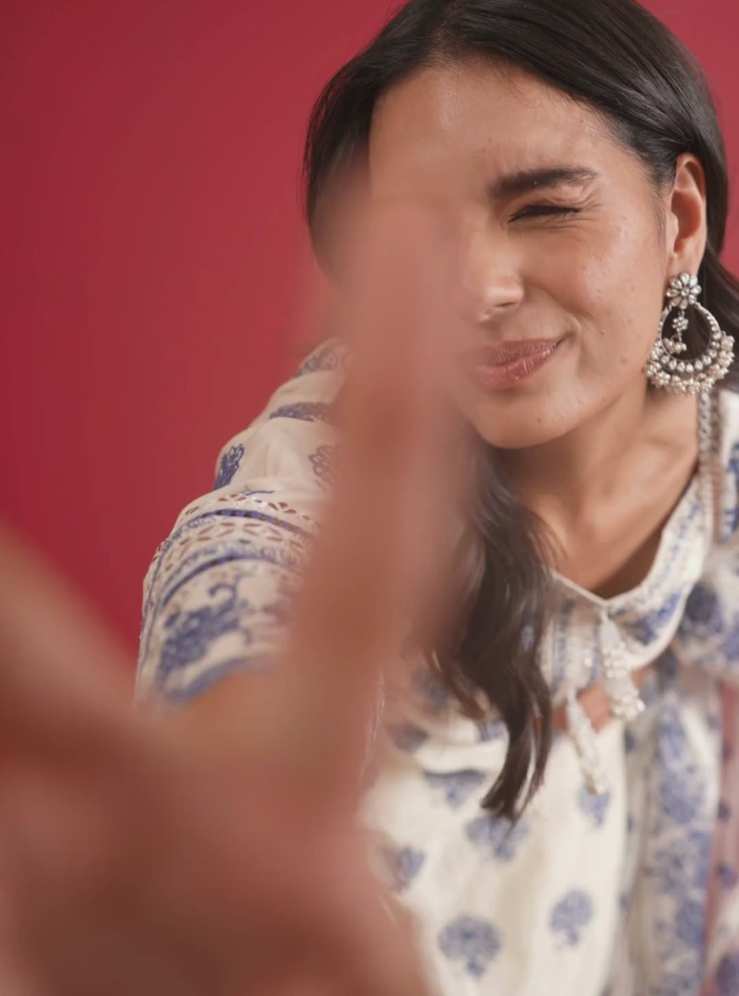 Timeless And Versatile, The Reha Kurta Set In Off White Embodies Refined Minimalism. Made From Pima Satin, It Features Subtle Embroidery And Classic Lace Inserts That Lend Texture To Its Clean Silhouette. Paired With Matching Pants And A Scalloped Organza Dupatta, It’S A Serene Look That Transitions Effortlessly From Morning Rituals To Festive Evenings.