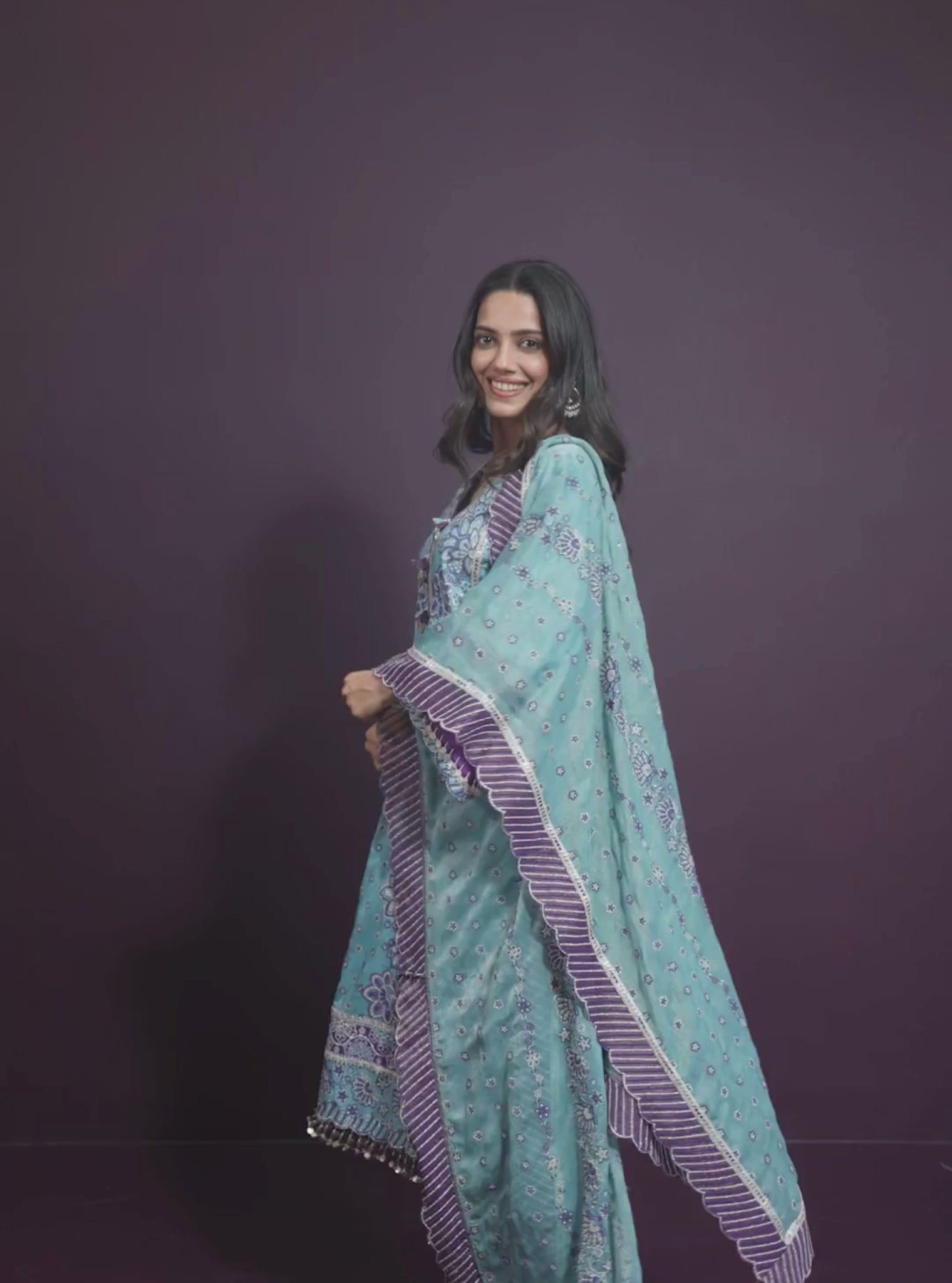 Renu Pima Satin Sky Blue Kurta with Purple Pant Set