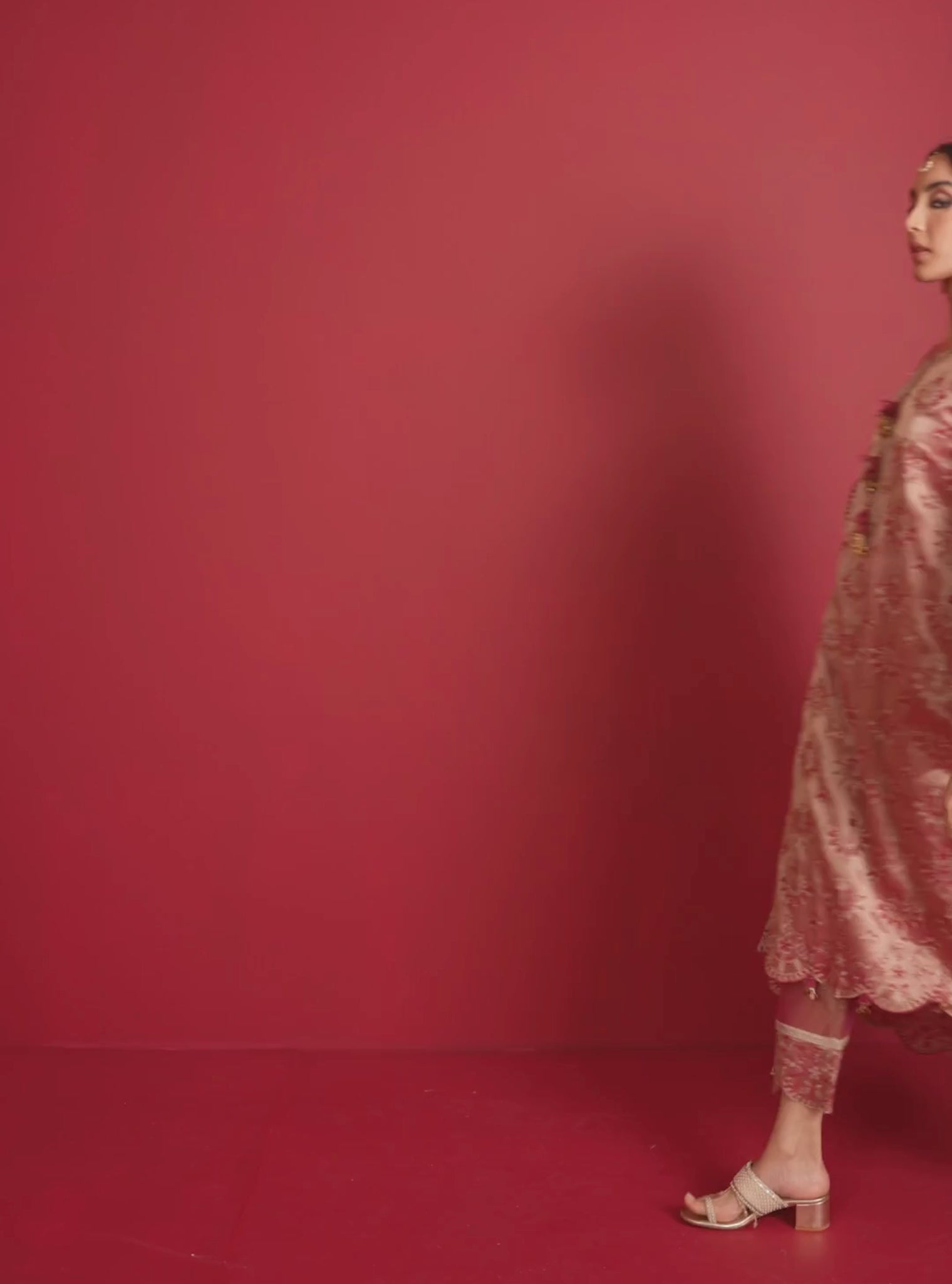 Vibrant, Celebratory, And Unapologetically Bold; This Straight Kurta Set Is Designed In Lustrous Tissue Fabric That Instantly Lights Up The Room. The Fuschia Kurta Is Paired With Matching Straight Pants For A Sleek, Elongated Look. A Flowing Tissue Dupatta In The Same Vivid Hue Completes The Ensemble, Making It The Perfect Pick For Karva Chauth Evenings.